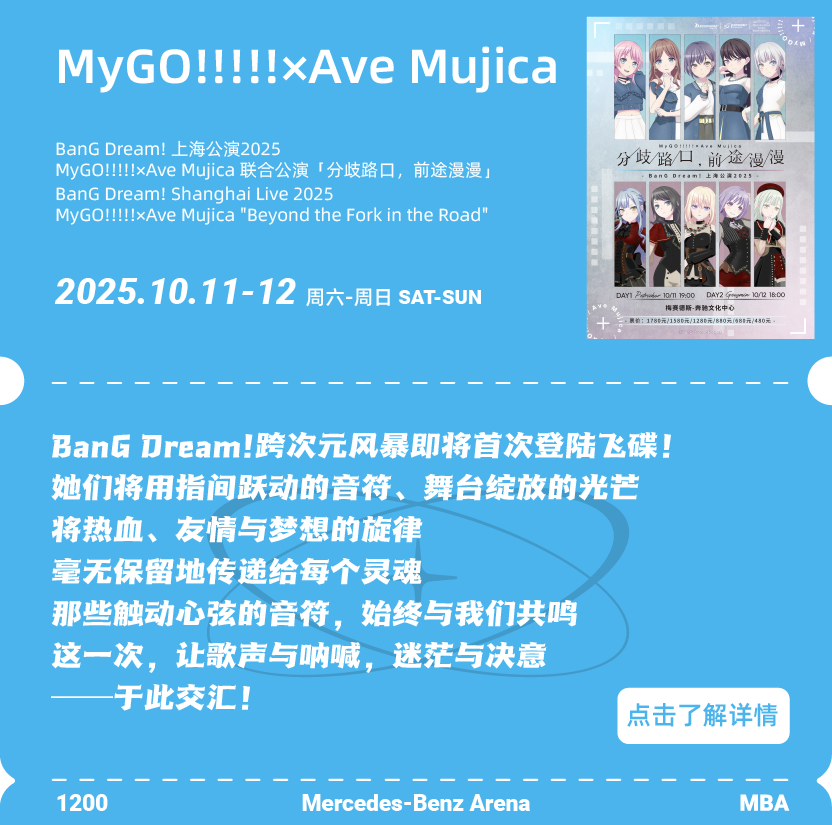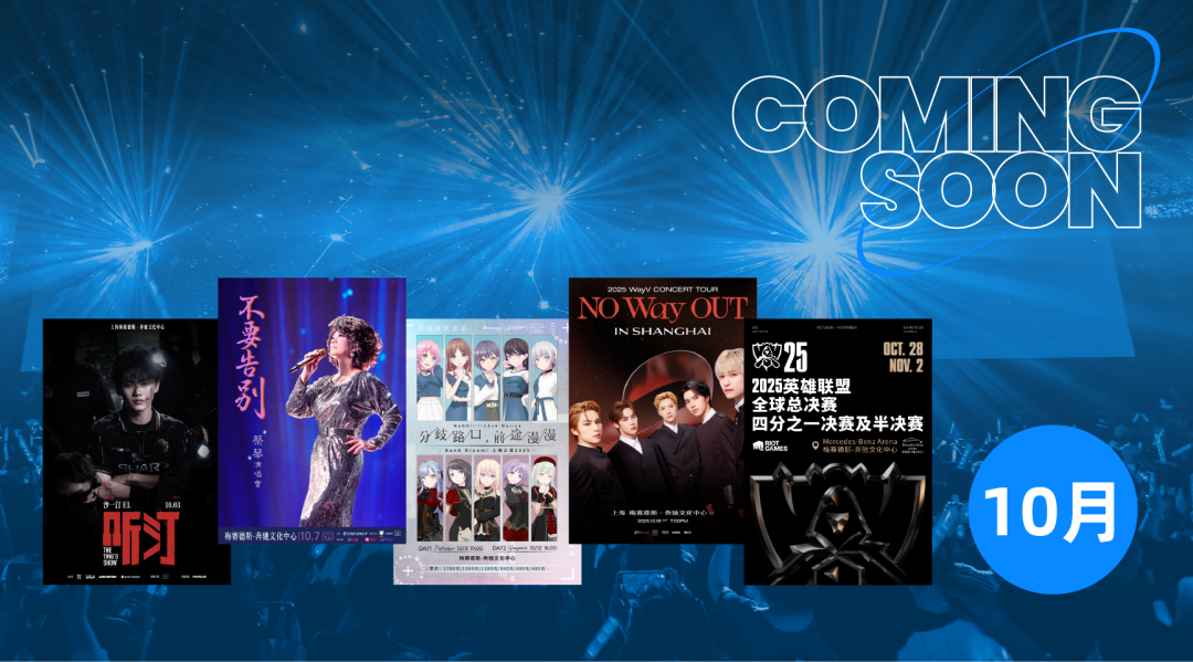 10月的上海演艺精彩不断,东方明珠旗下梅赛德斯-奔驰文化中心迎来多场备受期待的演出与赛事。从沙一汀的热血说唱、蔡琴的隽永金曲,到威神V的炸裂舞台、跨次元乐队BanGDream!的Live震撼,再到英雄联盟S赛的巅峰对决,音乐与电竞在此激情交响,打破所有次元壁。