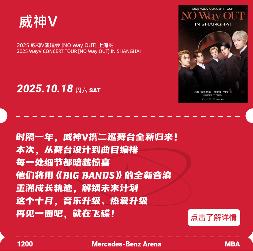 作为上海最具代表性的文化演艺地标之一,梅赛德斯-奔驰文化中心凭借国际一流的硬件设施、强大的场馆承载力与专业的服务能力,持续吸引全球顶尖艺人与顶级赛事纷至沓来。这个秋天,来梅奔,开启你的专属狂欢,共赴每一场不容错过的高能现场!