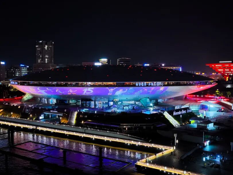 场馆同步深度融入上海国际光影节,推出“光・启未来”主题光影秀,已播放38场,融入上海天际线、梅奔中心15周年主题等元素,更上线AR烟花打卡秀,游客通过场馆小程序扫描“飞碟”建筑即可触发虚拟烟花绽放,打卡还能领取商户优惠券,双重光影体验让场馆成为黄浦江畔热门打卡地。演出热潮、光影互动同步带动商业餐饮及体验类等消费,实现“看演出、赏光影、享消费”的假日体验闭环。